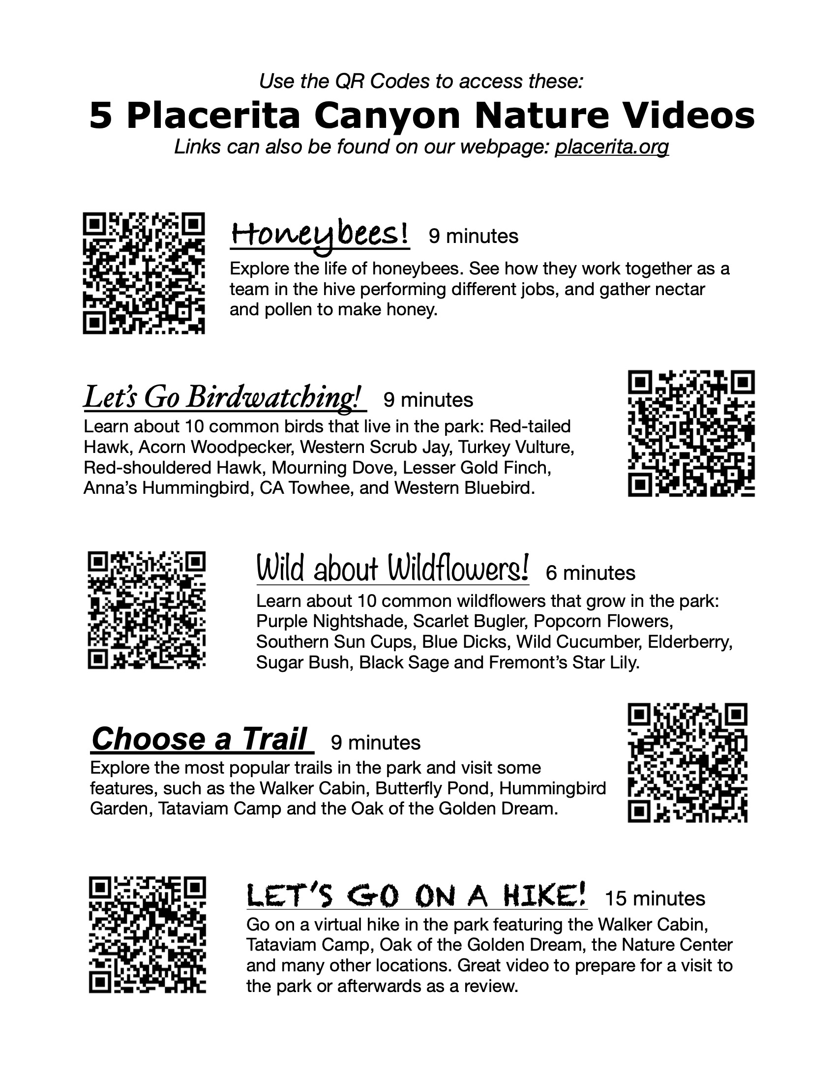 We have other nature videos that are both entertaining and educational. Access them through the QR Codes below: